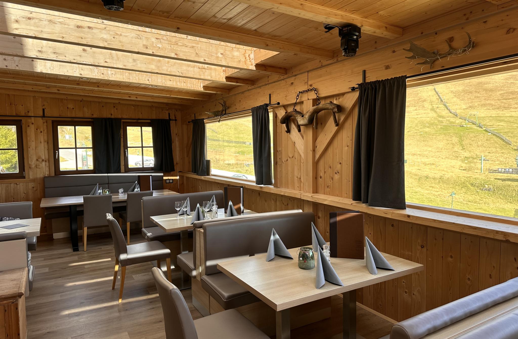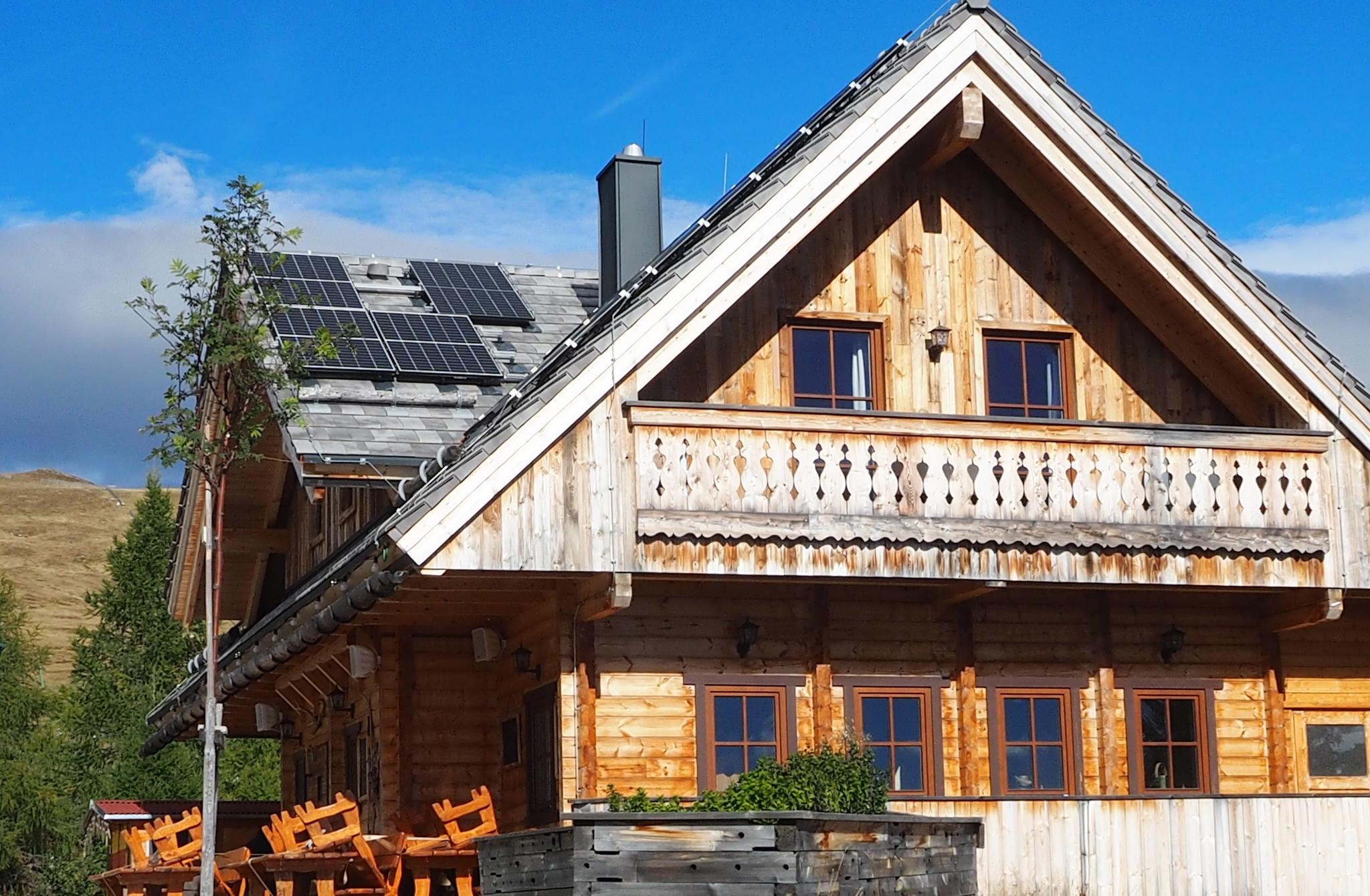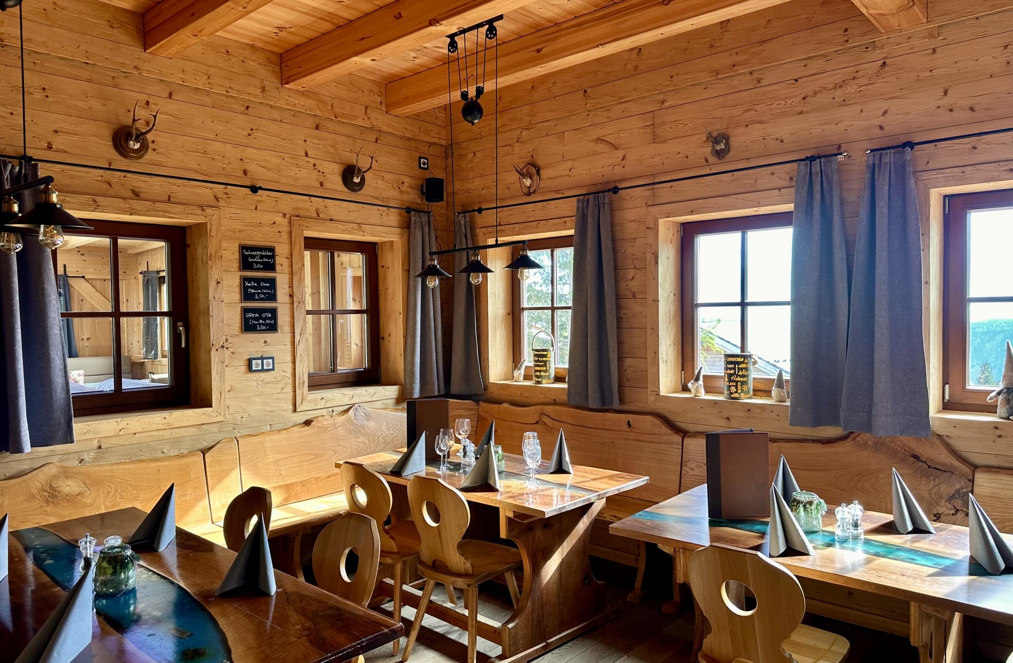 Die stilvolle Hüttenatmosphäre und die Terrasse mit Weitblick schaffen den perfekten Rahmen für